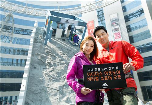 (서울=연합뉴스) 전준상 기자 = 아디다스 아웃도어는 25일까지 매주 주말 송파구 가든파이브 중앙광장 10m높이의 절벽 위에서 이색적인 '버티컬 스토어'를 국내 최초로 운영한다고 16일 밝혔다.