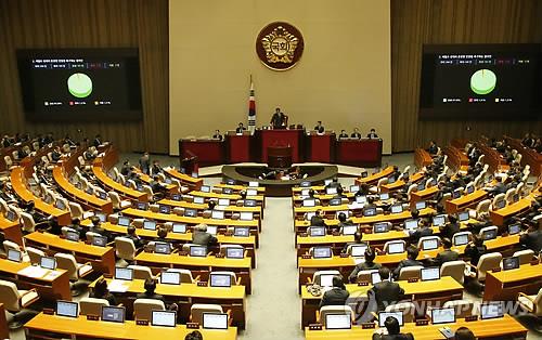 △ 세월호 선체의 온전한 인양을 촉구하는 결의안 통과 (서울=연합뉴스) 이상학 기자 = 16일 국회 본회의장에서 세월호 선체의 온전한 인양을 촉구하는 결의안이 처리 통과되고 있다.