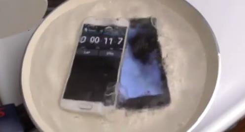 IT 전문매체 폰아레나는 16일 갤럭시S6와 아이폰6를 끓는 물이 담긴 프라이팬에 동시에 넣고 변화를 관측하는 유튜브 동영상을 소개했다.