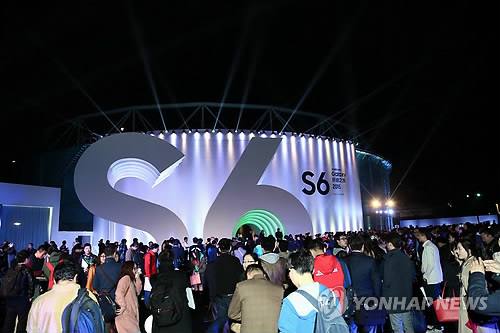 △ 중국 베이징 '갤럭시 S6' 월드투어 (서울=연합뉴스) 지난달 31일 중국 베이징에서 열린 '갤럭시 S6' 월드투어 행사 직전 미디어 관계자들과 소비자 등이 입장을 기다리고 있다. 이날 행사에는 미디어, 거래선, 소비자 등 1천여 명이 참여했다. 2015.4.1 << 삼성전자 제공 >> photo@yna.co.kr