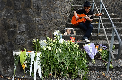 | △ (EPA=연합뉴스) 2013년 11월 26일(현지시간) 호주 브리즈번에서 한 남성이 이틀전 살해된 한국인 워킹홀리데이 참가자를 애도하며 노래를 부르고 있다. |