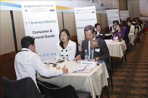17일(현지시간) 콜롬비아 수도 보고타 컨벤션센터에서 열린 '한·콜롬비아 비즈니스 파트너십' 행사에 한국 기업 44개사와 현지 바이어·수출업체 106개사가 참가해 정보기술(IT), 건설·환경 플랜트, 산업기자재, 소비재 등 총 154건의 수출상담을 진행했다.