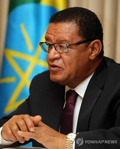 | △ 인터뷰 하는 에티오피아 대통령 (서울=연합뉴스) 최재구 기자 = 제7차 세계 물포럼 참석차 방한한 물라투 테쇼메 위르투 에티오피아 대통령이 지난 19일 오후 서울 롯데호텔에서 연합뉴스와 인터뷰를 갖고 있다. 그는 인터뷰에서 "한국 정부와 한국 국민이 에티오피아를 도울 가장 좋은 방법은 에티오피아의 개발 파트너가 되는 것"이라며 양국 간 호혜적 경제교류의 필요성을 강조했다. 2015.4.20 jjaeck9@yna.co.kr |
