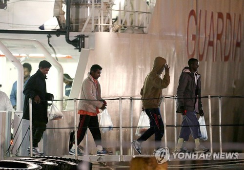 | △ 이탈리아 항구 도착한 지중해 침몰선 생존자 (EPA=연합뉴스) |