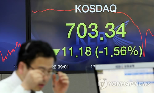 코스닥 지수는 오전 장중 720선을 돌파하며 랠리를 이어가다가 오후 들어 675.95까지 빠지며 5% 넘게 급락했다.