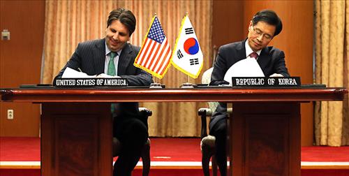△ 한미원자력협정 서명 (서울=연합뉴스) 전수영 기자 = 한미원자력협정이 4년 6개월여간의 협상 끝에 타결, 22일 오후 서울 세종로 외교부 청사에서 박노벽 외교부 원자력 협력대사와 마크 리퍼트 주한 미국대사가 협정에 가서명하고 있다.