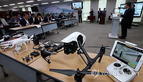 | △ 수원시, 신성장 '드론산업특구' 조성 (수원=연합뉴스) 신영근 기자 = 23일 오전 경기도 수원시 팔달구 인계동 수원시청에서 이필근 수원시 일자리정책국장이 무인항공기 드론의 연구와 제조, 판매 기능을 한 곳에 모은 '드론산업특구'를 만들어 수원시를 드론 선도도시로 구축한다고 밝히고 있다. 2015.4.23 drops@yna.co.kr |