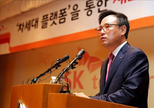 (서울=연합뉴스) 현윤경 기자 = "플랫폼 혁신에 올인해 2018년까지 SK텔레콤과 관련 회사의 기업가치를 현재의 두 배 수준인 100조원으로 끌어올리겠습니다."