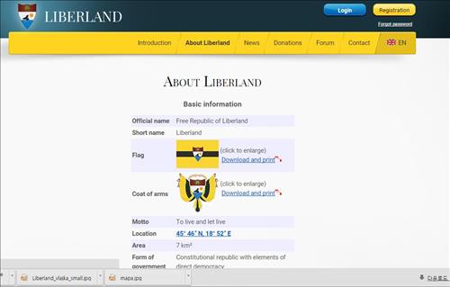 <리버랜드 웹사이트의 국기와 국장>