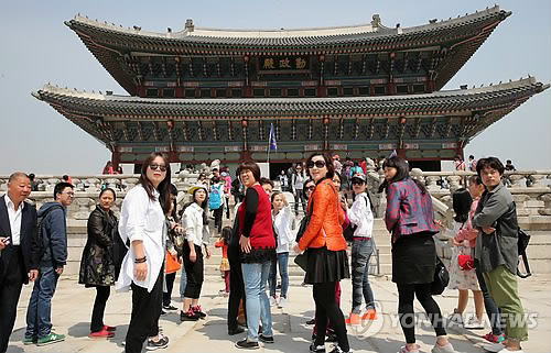 | △ 경복궁 찾은 중국인 관광객들이 근정전 등 경복궁 경내를 둘러보고 있다.(연합뉴스 자료사진) |