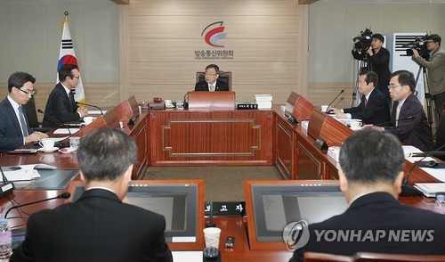 | △ 방통위 전체회의 (서울=연합뉴스) 최성준 방송통신위원장이 24일 오전 정부과천청사 방송통신위원회 회의실에서 열린 전체회의에 참석해 회의를 주재하고 있다. (방송통신위원회 제공) |