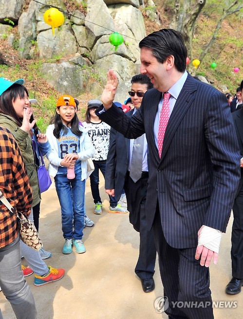 리퍼트 대사, 경주 수학여행 온 학생들에게 인기 '짱'