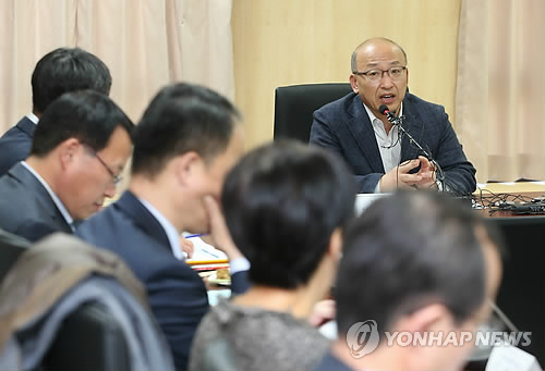 △ 모두발언하는 문형표 장관 (서울=연합뉴스) 서명곤 기자 = 문형표 보건복지부 장관이 25일 오후 서울 중구 충무로 한국건강증진개발원에서 열린 중앙생활보장위원회 회의에서 모두발언을 하고있다. 2015.4.25 seephoto@yna.co.kr