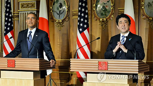 먼저 아베 총리는 28일 백악관 오벌오피스에서 오바마 대통령과 회담하고 양국간 안보협력강화와 환태평양경제동반자협정(TPP) 협상 촉진 등을 담은 공동성명을 발표할 것으로 전해졌다.
