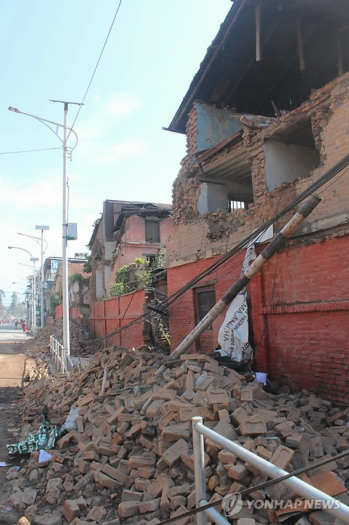 | △ 네팔 강진에 무너진 주택들 (카트만두=연합뉴스) 나확진 특파원 = 27일(현지시간) 오전 네팔 카트만두에서 이틀전 강진으로 무너진 주택이 수습되지 않은 채 버려져 있다. |