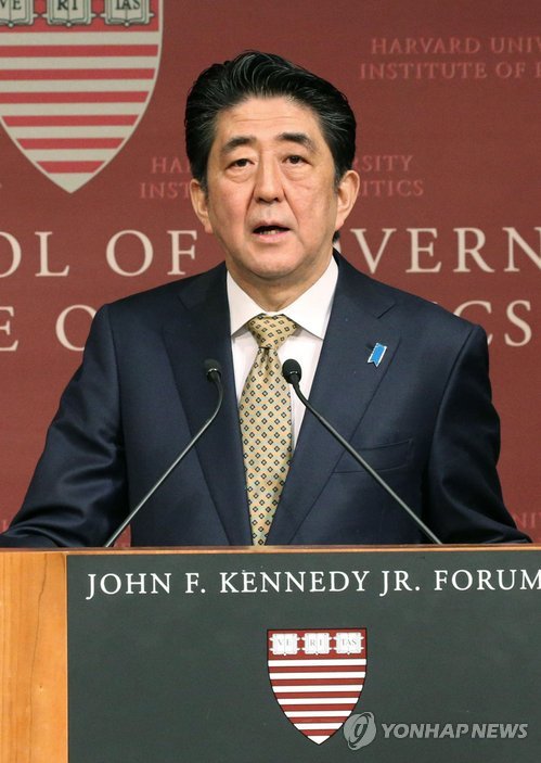 미국을 공식 방문 중인 아베 총리는 이날 오전 하버드대학 공공정책대학원(케네디스쿨)에서 열린 강연에서 군 위안부 관련 질문이 나오자 이같이 답변했다.