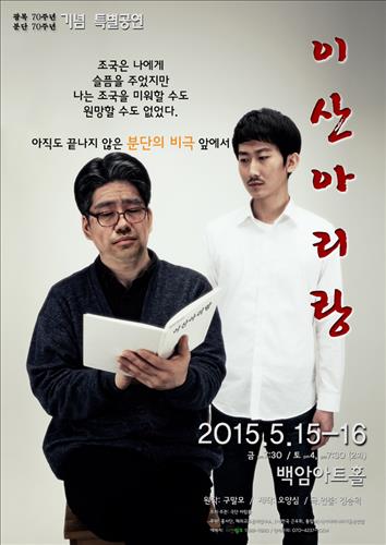 다음 달 15,16일 이틀간 서울 강남구 삼성동의 백암아트홀에서 선보이는 '이산아리랑'은 재일동포 2세 구말모(75) 씨의 일대기를 그린 작품이다.