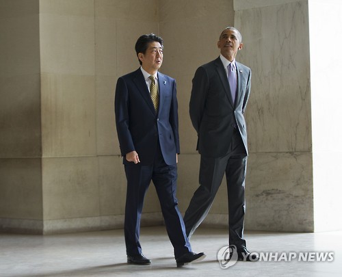 △ 오바마-아베, 링컨 기념관 방문(AP=연합뉴스)