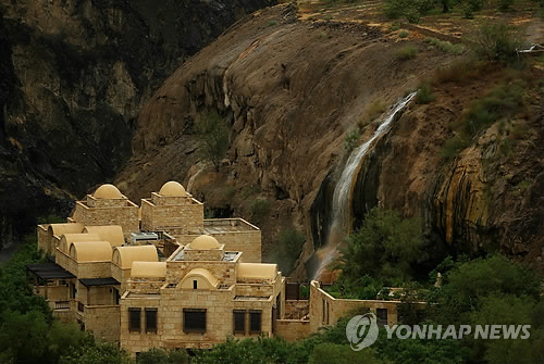 | △ (사해<요르단>=연합뉴스) 성연재 기자 = 해발 260m 아래의 마인온천은 화산폭포 온천이 장관을 이루는 곳이다. 2015.4.28 polpori@yna.co.kr |