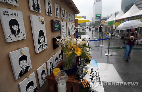| △ 세월호 1주기 앞두고 비 내리는 광화문광장 (서울=연합뉴스) 신준희 기자 = 세월호 참사 1주기를 이틀 앞둔 14일 오전 서울 광화문광장에 설치된 희생자 추모 공간 앞으로 한 시민이 걸어가고 있다. 2015.4.14 hama@yna.co.kr |