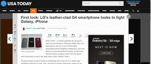 미국 3대 일간지인 USA투데이는 29일(현지시각) '천연가죽을 입은 G4가 갤럭시와 아이폰에 도전장을 내밀었다'는 제목의 기사에서 G4의 특장점을 비교적 상세하게 소개했다.
