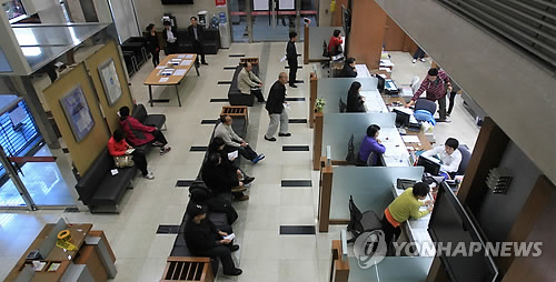 | △ 은행 창구앞에서 대기하고 있는 고객들 (연합뉴스 자료사진) |