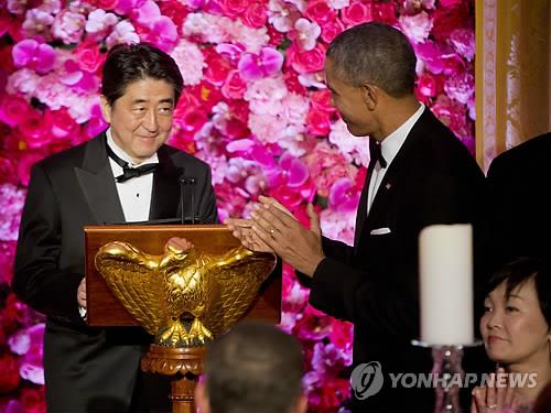 | △ 지난달 28일(현지시간) 백악관에서 있었던 아베 총리 환영만찬(AP.연합뉴스) |