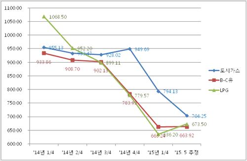 가격 인하가 자유로운 LPG 및 B-C유와 달리 도시가스는 2개월 단위의 원료비 연동제를 적용하고 있다. 유가와 환율 변동에 신속하고 탄력적으로 대응하기 어려운 구조라는 설명이다.