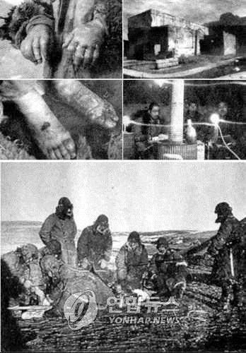 | △ 731부대 생체동상실험. 중국 헤이룽장(黑龍江)성 하얼빈(哈爾濱)시 핑팡구 정부와 중국사회과학원이 공개한 극비문서를 흑룡강신문이 과거 보도한 사진.(연합뉴스DB) |