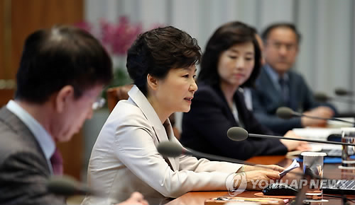 | △ 수석비서관회의 발언하는 박 대통령 (서울=연합뉴스) 도광환 기자 = 남미 순방 이후 건강 악화로 안정을 취해온 박근혜 대통령이 4일 오전 청와대에서 열린 대통령 주재 수석비서관회의에 참석, 발언하고 있다. |