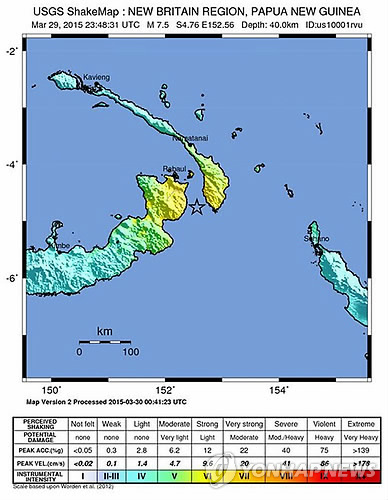 (시드니·서울=연합뉴스) 김기성 특파원 장재은 기자 = 남태평양 호주 북쪽에 있는 파푸아뉴기니 인근에서 5일 규모 7.4의 강진이 발생했다.