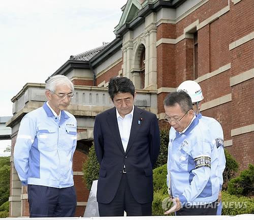 △ 아베 신조(安倍晋三) 일본 총리가 작년 7월, 유네스코 세계문화유산 등재를 추진 중인 후쿠오카(福岡)현 기타큐슈(北九州)의 야하타(八幡)제철소를 방문한 모습.