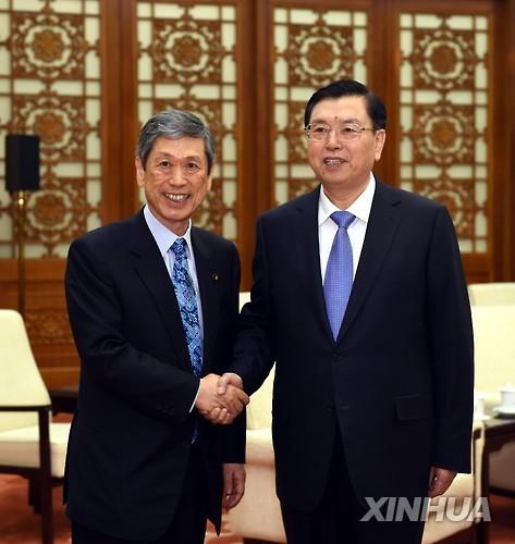 중국 공산당 서열 3위인 장 위원장은 베이징(北京) 인민대회당에서 고무라 마사히코(高村正彦) 일본 자민당 부총재와 회동한 자리에서 "(올해는) 전후 70주년의 중요한 시기"라며 이같이 말했다.
