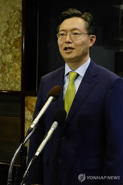 △ 황준국 외교부 한반도평화교섭본부장 (워싱턴=연합뉴스) 김세진 특파원 = 북핵 6자회담의 우리 측 수석대표인 황준국 외교부 한반도평화교섭본부장이 5일(현지시간) 워싱턴DC의 주미한국대사관에서 방미 성과에 대한 기자들의 질문에 답하고 있다. 2015.5.6. smile@yna.co.kr