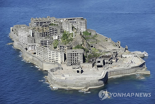 | △ '조선인 강제징용' 일본산업시설 세계유산 등록 유력 (도쿄 교도=연합뉴스) 조선인 강제징용의 한이 서린 일본 산업시설의 유네스코 세계유산 등록이 유력해졌다. 일본 정부는 2014년 1월 후쿠오카(福岡)현 기타큐슈(北九州)의 야하타(八幡)제철소, 나가사키(長崎)현의 나가사키 조선소(미쓰비시 중공업) 등 현재 가동 중인 시설과 미쓰비시 해저 탄광이 있던 하시마(端島.일명 '군함도') 등 총 23개 시설을 산업유산으로 등재 신청했다. 이 가운데는 과거 5만7천900명의 조선인이 강제징용된 7개 시설이 포함돼 있다. 사진은 미쓰비시 해저 탄광이 있던 하시마(端島.일명 '군함도'). |