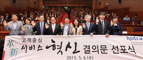 (서울=연합뉴스) 이봉준 기자 = 코트라는 6일 서울 서초구 사옥 국제회의장에서 '고객 중심 서비스 혁신 결의문 선포식'을 열고 서비스 혁신 실천방안 6계명을 발표했다고 7일 밝혔다.