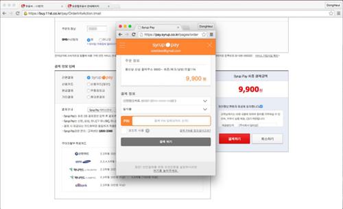 시럽페이란 PC와 스마트폰을 이용해 미리 설정한 결제비밀번호 입력만으로 결제할 수 있는 간편결제 서비스다.