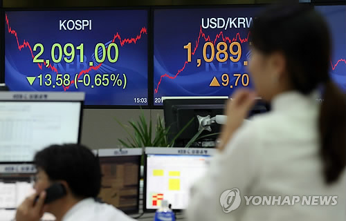 코스피는 전 거래일보다 13.58포인트(0.65%) 하락한 2,091.00으로 장을 마쳤다.