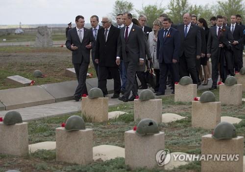 슈타인마이어 장관은 세르게이 라브로프 러시아 외무장관과 함께 이날 볼고그라드 인근의 군 묘지를 찾아 헌화하고 "독일 나치가 이곳 볼고그라드 시민과 군인 들에게 겪게 한 고통은 매우 이해할 수 없는 처사"라고 말했다.