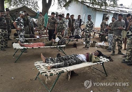 △ 올해 4월11일 인도 차티스카르 주 수크마 지역에서 마오주의 반군의 공격으로 다친 인도 경찰들이 누워있다.(AP=연합뉴스DB)