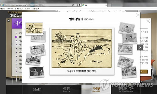△ 근대교과서 발행 120주년 온라인 전시 열려 (서울=연합뉴스) 최초의 근대 교과서 '국민소학독본' 발행 120주년을 맞아 교과서의 변천을 살필 수 있는 온라인 전시가 마련된다. 금성출판사는 '삽화로 보는 시대 문화 컬렉션' 기획전을 인터넷 웹사이트(museum.kumsung.co.kr)에서 무료로 한다고 11일 밝혔다. 사진은 시대관 '일제 강점기' 관련 삽화. (웹사이트 museum.kumsung.co.kr 캡처)