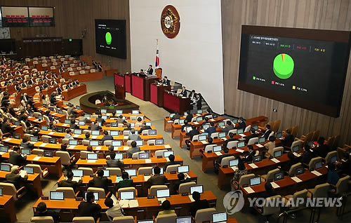 | △ 소득세법 국회 통과…638만명 1인당 7만1천원 돌려받아 (서울=연합뉴스) 진성철 기자 = 12일 국회 본회의에서 연말정산 환급을 골자로 한 '소득세법' 개정안이 통과되고 있다. 개정안은 이달 급여일에 연말정산 추가환급분 4천560억 원을 638만 명에 환급하도록 했다. 1인당 환급받는 금액은 평균 7만1천원 가량이다. |