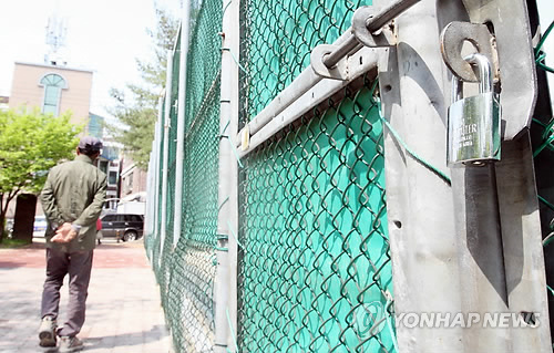 | △ 문 닫힌 테니스장 (청주=연합뉴스) 김형우 기자 = 13일 오전 청주시 흥덕구 가경동의 한 테니스장 문이 굳게 닫혀있다. vodcast@yna.co.kr |