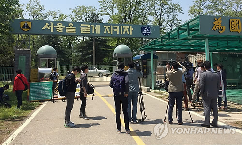 △ 총기 사고 발행한 예비군 훈련장 (서울=연합뉴스) 신준희 기자 = 13일 오전 예비군 사격훈련중 총기 사망사고가 발생한 예비군 훈련장 앞에서 취재진이 취재하고 있다.