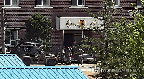 | △ 긴장 감도는 사고 부대 (서울=연합뉴스) 신준희 기자 = 13일 총기 사고가 발생한 서울 내곡동 예비군훈련장에 긴장이 감돌고 있다. |