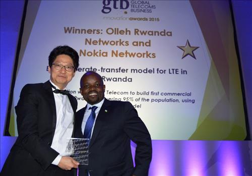 KT는 지난 13일(현지시간) 영국에서 열린 GTB(글로벌 텔레콤 비즈니스) 혁신상 수상식에서 KT와 르완다 정부의 합작회사인 oRn(olleh Rwanda networks)이 모바일 네트워크 부문에서 수상했다고 14일 밝혔다.