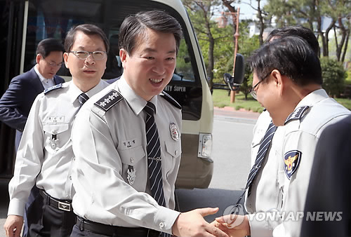 | △ 강신명 경찰청장 전북경찰청 방문 (전주=연합뉴스) 최영수 기자 = 강신명 경찰청장이 14일 오전 전북지방경찰청을 찾아 직원들과 악수하고 있다. 왼쪽은 홍성삼 전북지방경찰청장. 2015.5.14 kan@yna.co.kr |