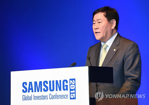 △ 축사하는 최경환 부총리 (서울=연합뉴스) 최경환 부총리 겸 기획재정부 장관이 14일 서울 중구 신라호텔에서 삼성증권이 개최한 '2015 글로벌 투자자 콘퍼런스'에 참석, 축사하고 있다. 2015.5.14 << 기획재정부 제공 >> photo@yna.co.kr