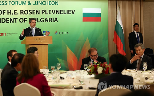 | △ 기조연설 하는 불가리아 대통령 (서울=연합뉴스) 신준희 기자 = 불가리아 플레브넬리에프 대통령이 15일 오후 서울 소공동 롯데호텔에서 중기중앙회와 전경련 등 경제 4단체가 주최한 비즈니스 포럼 및 오찬 행사에서 기조연설을 하고 있다. hama@yna.co.kr |