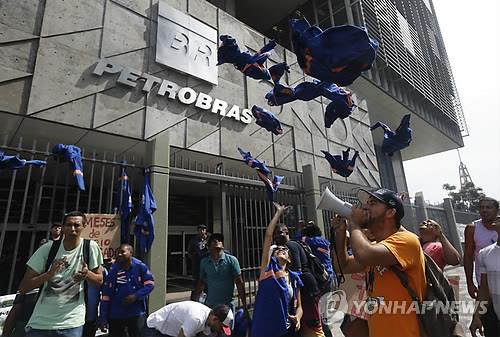 | △ 브라질 리우데자네이루에 있는 페트로브라스 본사 앞에서 벌어진 반정부 시위.(AP=연합뉴스 자료사진) |